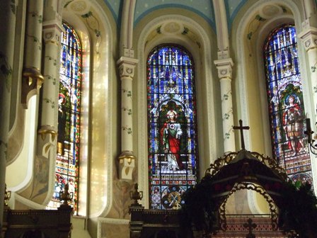 Але я б сказав, що найгарніший вітраж знаходиться у церкві св. Іоана Златоустого, колишньому костелі францисканок (вулиця Лисенка, 43, – Варіанти). Це вітраж, якщо я не помиляюсь, 1880-х років, робила його Мюнхенська вітражна фірма.