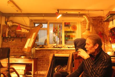 Варіанти завітали до затишної майстерні реставраторів, що займаються відновленням віражу, і, під звуки бібопу, поспілкувалися з Олегом Янковським, доцентом кафедри художнього скла Академії Мистецтв.