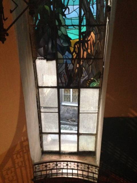 Сторічний модерний вітраж із житлового будинку на вулиці Герцена віддали на реставрацію.