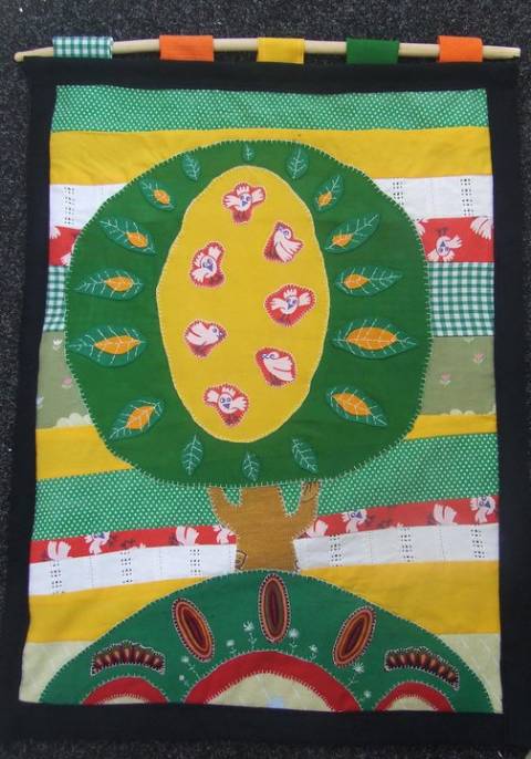 Я аплікаціями спочатку зацікавилась, а потім подумала зробити витинанку з тканини. Коли роблю, думаю, що кожна тканина може бути з різних країн світу, цікаво чия вона і звідки саме.