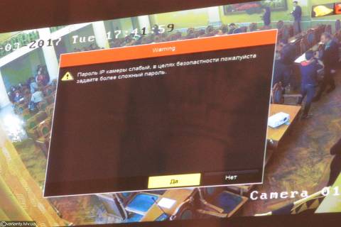 Меню камери на екрані у сесійній залі Львівської міської ради просить пароль російською мовою.