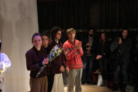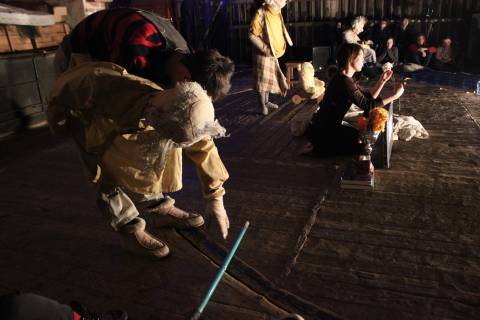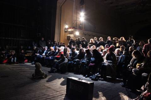 Для глибшого занурення публіки у дійство глядацький зал перенесли на сцену, а саму сцену посунули впритул до задньої стіни. Таким чином, утворилася ніби ще одна "мала сцена" театру. Втім, у результаті для усіх охочих відвідати виставу місця виявилося замало. Люди сиділи на підлозі і стояли у проходах, заповнюючи собою усі ніші та рельєф залу.