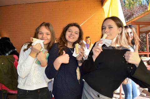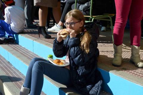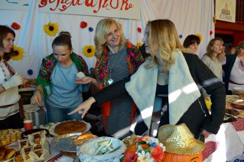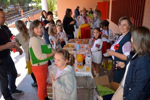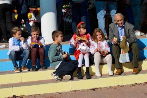 Ці рядки, як виявилося, стали спонукою до дії. Адже на призьбі школи ще залишалися столи зі смачною кулінарно-кондитерською продукцією після проведеного ярмарку. Власне, її учасники свята змогли скуштувати після закінчення заходу.