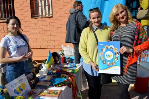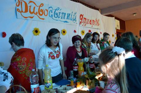 Проте не лише наїдками торгували численні продавці. Але й національною символікою, предметами народного вжитку, вишиванками, коралями, браслетами та іншим. Тому біля столів, де пропонували свої товари дві Антоніни – мама нашої учениці Венгренюк-Яворницька та її подруга-волонтерка Патиченко, – було не менш людно.
