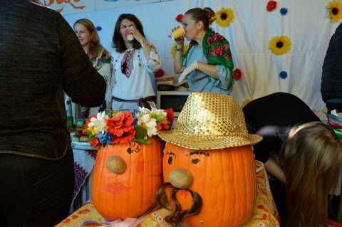 Особлива увага була прикута ще до однієї дійової особи. Ним виявися Гарбуз у виконанні Галини Загоруйко – мами нашої третьокласниці. Не біда, що мало усміхався цей герой (як згодом з'ясувалося: приклеєні вуса не дозволяли цього зробити, а то могли будь-якої миті звалитися на підлогу), зате сподобався глядацькій аудиторії своїми щирими побажаннями. Разом з Гарбузом на сцену випурхнули і учасники сценки "Ходить гарбуз по городу", розказаної ними в сучасній інтерпретації.