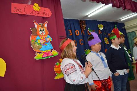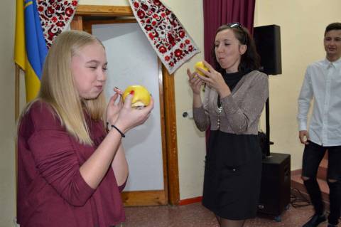Безперечно, сама музично-поетична розповідь про осінь була б доволі скучною для дітей. Тому не обійшлося і без загадок, і без захоплюючих ігор-конкурсів, які так полюбляє малеча. В одному з них взяли участь і батьки учнів, визначаючи моторнішого в поїданні яблука. А також хлопчик-іспанець Матіас – приятель одного з наших третьокласників. На святі він перебував разом зі своєю мамою Анною – вчителькою за професією.