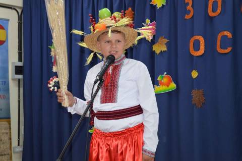 А як же без її величності Осені? Такого просто уявити собі неможливо. З роллю найщедрішої пори року чудово впоралася учениця випускного класу Вікторія Савків. А її чарівна усмішка протягом усього свята дарувала неймовірну теплоту і присутнім у залі глядачам, і учасникам дійства. До пари царівні дня прийшовся ще один персонаж свята – Урожай.