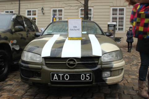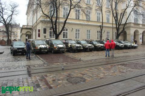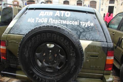 Народний депутат України Володимир Парасюк та відправлення 10 автомобілів для українських військових в АТО зі Львова.