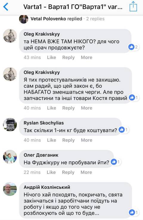 Варіанти зібрали у Facebook думки мешканців області щодо блокування пунктів пропуску бізнесменами: