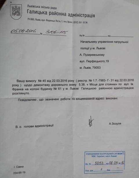 Минуло достатньо часу, поки наше звернення блукало коридорами влади, але нарешті воно потрапило в патрульну службу поліції міста Львова.