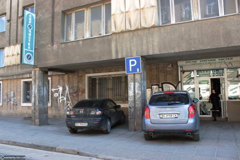 Далі і нижче сьогоднішні фотографії паркування та знаку "Місце для стоянки" на вулиці Івана Франка, 61.