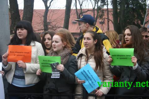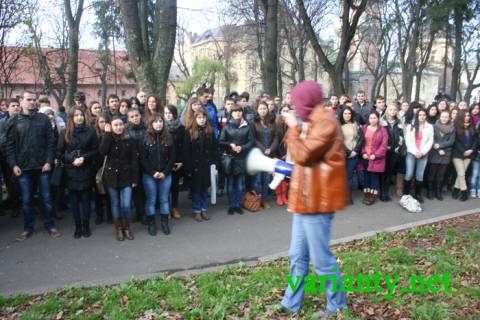 Сьогодні, о 11 годині, біля стін Львівської обласної ради, зібралось близько 100 людей, передає кореспондент Варіантів.