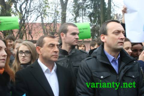 До протестувальників вийшов голова Львівської обласної ради Петро Колодій, який розповів, що тільки планує розмову з політичними партіями та громадськими організаціями.