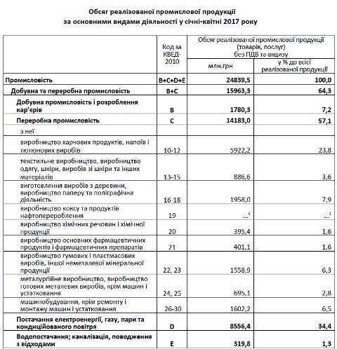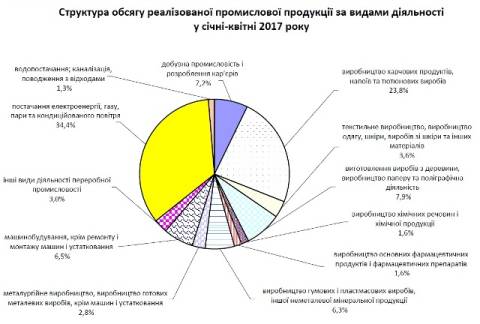 Натомість підприємства з постачання електроенергії, газу, пари та кондиційованого повітря реалізували 34,4% усієї промислової продукції (8,6 млрд грн), добувної промисловості і розроблення кар’єрів – 7,2% (1,8 млрд грн), з водопостачання, каналізації, поводження з відходами – 1,3% (0,3 млрд грн).