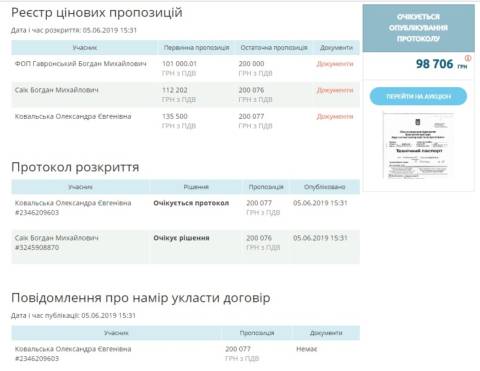 Повторний аукціон стартував 5 червня, участь у ньому взяли Богдан Гавронський, Богдан Саїк та Олександра Ковальська, які запропонували за приміщення 200 000 грн, 200 076 грн і 200 077 грн відповідно. Переможцем обрали Олександру Ковальську (місто Золочів).