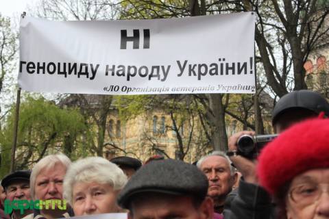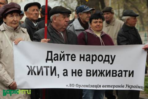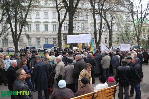 Пікет львівських ветеранів, пенсіонерів та комуністів біля Львівської ОДА.