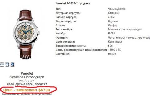 Зокрема, на сайті Watches-master.com є інформація про ціну стильного годинника Perrelet Skeleton Chronograph.