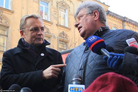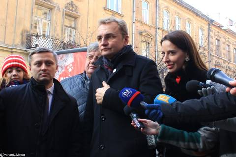 Андрій Садовий та його молода команда презентують майбутнє у сецесійному Львові, неподалік суду, де колядники засівали суддю Зварича.