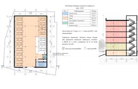 У будівлі передбачена автостоянка на 17 авто, а загальна площа паркінгу становитиме 395,15 м².