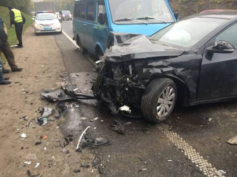 Сьогодні о 8.20 на дорозі Київ-Чоп поблизу села Чишки Пустомитівського району водій авто «Нісан Мікра», львів’янка, зіткнулась з автопоїздом «Рено». Від удару її авто виїхало на смугу зустрічного руху та врізалося у автівку «Шевроле» та мікроавтобус «РАФ».