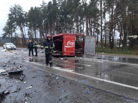 Внаслідок аварії постраждали водій та пасажир однієї із вантажівок. Їх із травмами госпіталізували у лікарню.