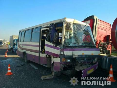 Сьогодні близько 08.50 год на дорозі Київ-Чоп неподалік села Малехів Жовківського району зіткнулися мпршрутка сполученням Радехів – Львів, під керуванням мешканця Радехівського району, та вантажівка «ДАФ», за кермом якої знаходився мешканець Кам’янко-Бузького району.