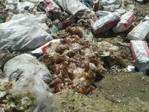 Звалище рештків тварин знаходиться поблизу птахофабрики у Пустомитах.