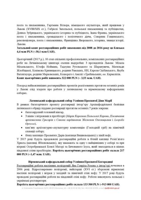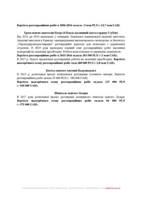 Вартість всіх цьогорічних реставраційних робіт, які фінансує польська сторона, становить близько 8,2 млн грн.