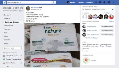 Зокрема, він у спільноті "Жовква – моє місто" опублікував оголошення про безкоштовну роздачу підгузків біля Жовківської міської ради, округу, від якого у 2014 році балотувався та пройшов у Верховну Раду Володимир Парасюк.