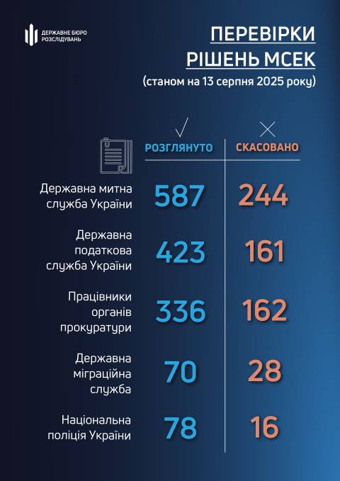 – Державна міграційна служба – скасовано 28 рішень із 70 розглянутих;