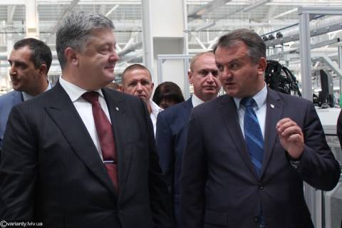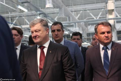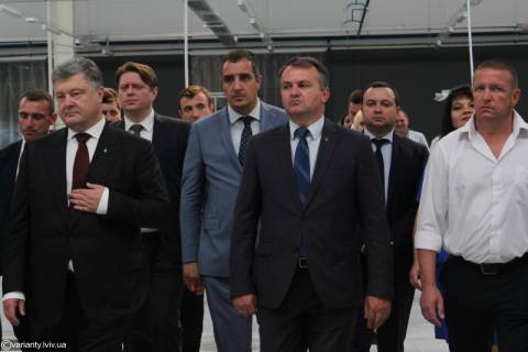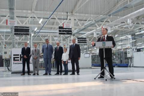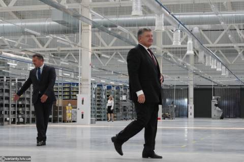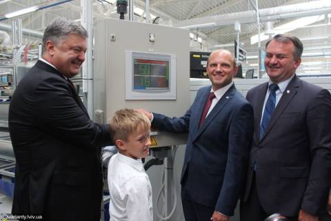 Президент України Петро Порошенко відкриває у Бродах завод "Електроконтакт Україна", який виготовлятиме кабельні мережі для концерну BMW.