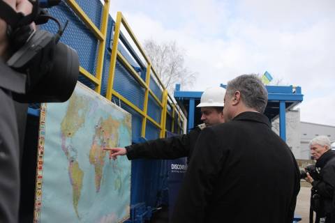 Сьогодні, 28 березня, президент Петро Порошенко відвідав ТОВ "Діскавері-бурове обладнання (Україна)" у Стрию. Там він оглянув нову повнокомплектну бурову установку для буріння і обслуговування нафтогазових свердловин.