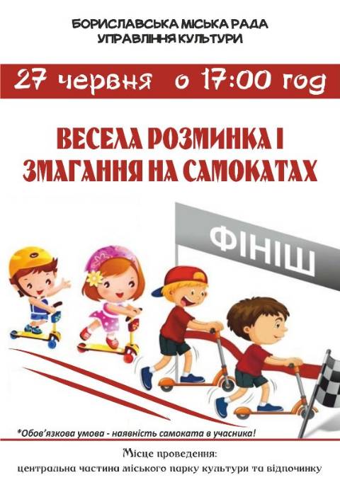 У неділю, 27 червня, у рамках святкування 25-ої річниці Дня Конституції та Дня молоді на центральній алеї у Бориславському міському парку культури та відпочинку відбудеться змагання на самокатах.