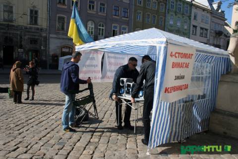 В наметі постійно чергуватимуть люди. Учасники акції розповіли, що головний лікар 4-го стомату Галина Лялька веде себе по хамськи з персоналом. Крім цього, за словами пікетувальників, в поліклініці діють корупційні схеми.