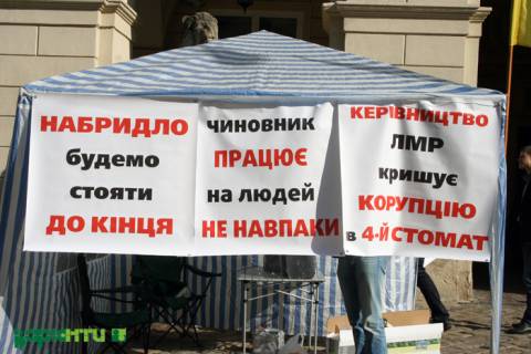 Сьогодні, 13 травня, під стінами Львівської міської ради працівники 4-ої стоматологічної поліклініки встановили намет, оголосили акцію протесту та поспілкувалися із Садовим.