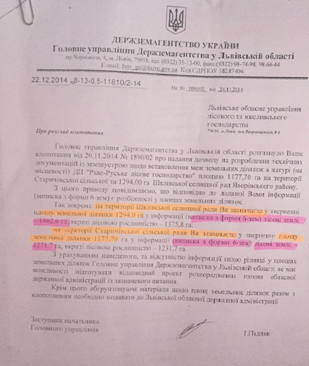 Розбіжність у документах виявило ГУ Держземагентства у Львівській області та відмовилось підготувати відповідний проект розпорядження голови обласної державної адміністрації з зазначеного питання, чим фактично заблокувало подальший процес оформлення документів підприємства на право користування земельними ділянками та вибуття цих ділянок з користування підприємства.