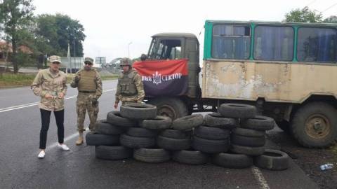 Правий сектор та представники рядку громадських організацій встановили блокпост на виїзді зі Львова до Мукачева а саме на повороті на Деревач.