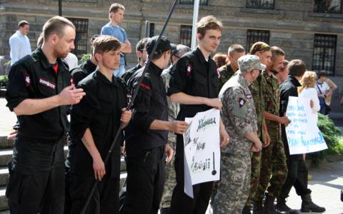 Сьогодні, 10 червня, Правий сектор пікетував під стінами ГУ МВСУ у Львівській області з вимогою звільнити працівників міліції, які працювали під час керівництва Олександра Рудяка.