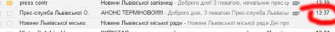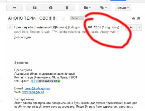 Прес-служба Львівської обласної держадміністрації наслилає інформацію з запізненням. Так, сьогодні анонс про засідання Круглого столу з мистецьким активом області стосовно ситуації спадщини Бориса Возницького на електронну адресу Варіантів надійшов о 13.37. Розпочався захід о 13.00 годині.