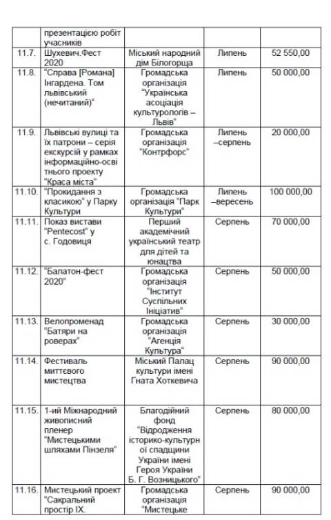 Нагадаємо, на початку червня у місті назвали переможців конкурсу "Фокус на культуру". Ними стали 20 культурних проектів, які отримають фінансування з бюджету Львова.