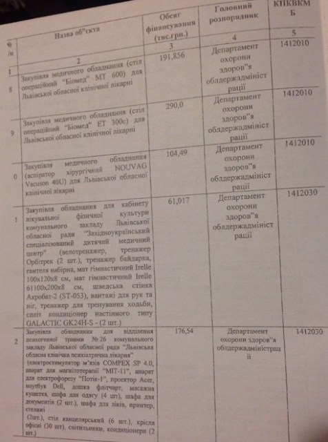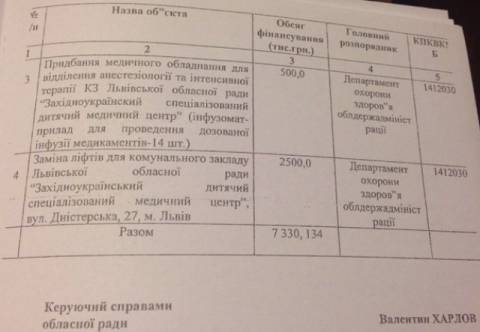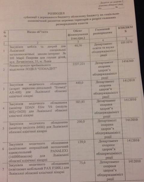 Окрім закупівлі медичного облааднання та препаратів для медичних закладів області, йдеться й про виділення 2,2 млн грн на реконструкцію приймального відділення Львівської обласної дитячої клінічної лікарні "Охматдит".