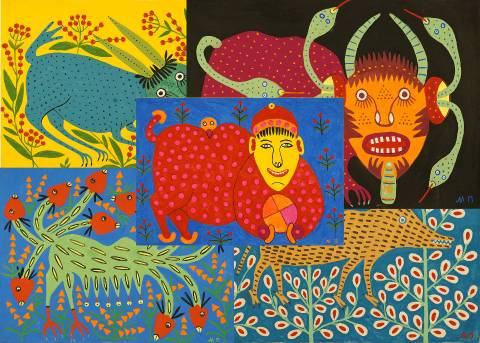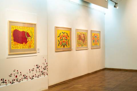 Переважна частина експонованих композицій на виставці "Марія Примаченко. Дарую Україні!" репрезентують пізній період творчості мисткині, останнє десятиріччя її життя.