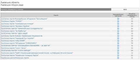 Всього до Львівської міськради балотуються 843 кандидатів у списках цих політичних партій.