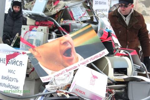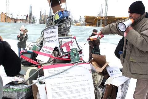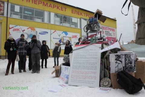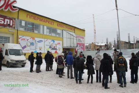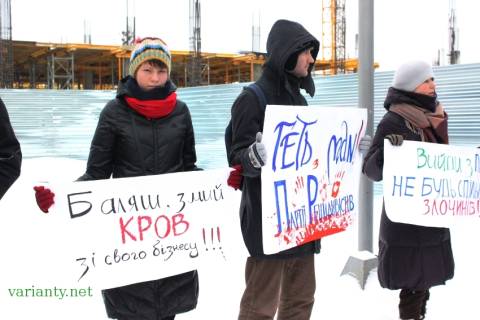 Псевдо-революціонери пікетують біля магазину електроніки, який належить Олегу Баляшу.
