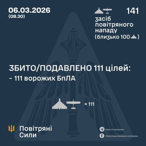 Протиповітряною обороною було знешкоджено 111 безпілотників.