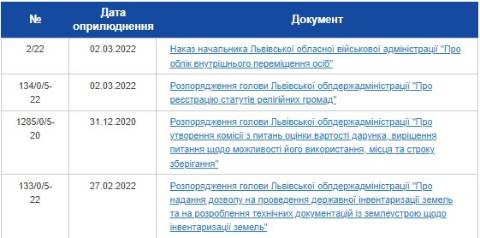 На сайті Львівської ОДА у розділі "Розпорядчі документи" з'явилося розпорядження "Про утворення комісії з питань оцінки вартості дарунка, вирішення питання щодо можливості його використання, місця та строку зберігання".
