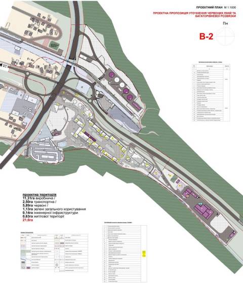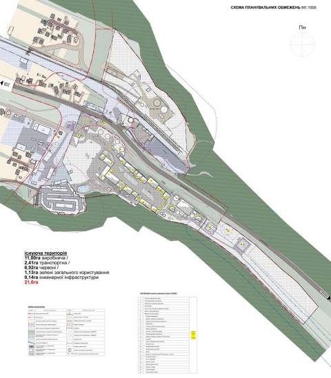 За даними ДПТ, площа території проектування становить 21,6 га. На території знаходиться підприємство дріжджового продукту завод ПрАТ "Компанія Ензим", асфальтобетонна установка та житлова садибна забудова.