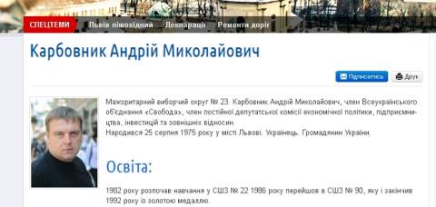 Але на мить інквізиційні інтонації зникають, і третій депутат-свободівець вже чомусь не депутат ЛМР Андрій Карбовник,а звичайний перехожий. Карбовник чітко, виразно, релевантно ідентифікується як анонімний перехожий.