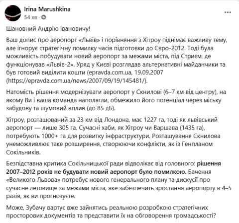 Дискусія розгорілася після допису мера про загрозу забудови Сокільників для Міжнародного аеропорту «Львів».