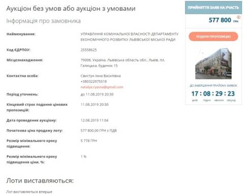 Нагадаємо, Львівська міськрада також продає приміщення на вул. П. Дорошенка, 6 та 8 за 52 млн грн.